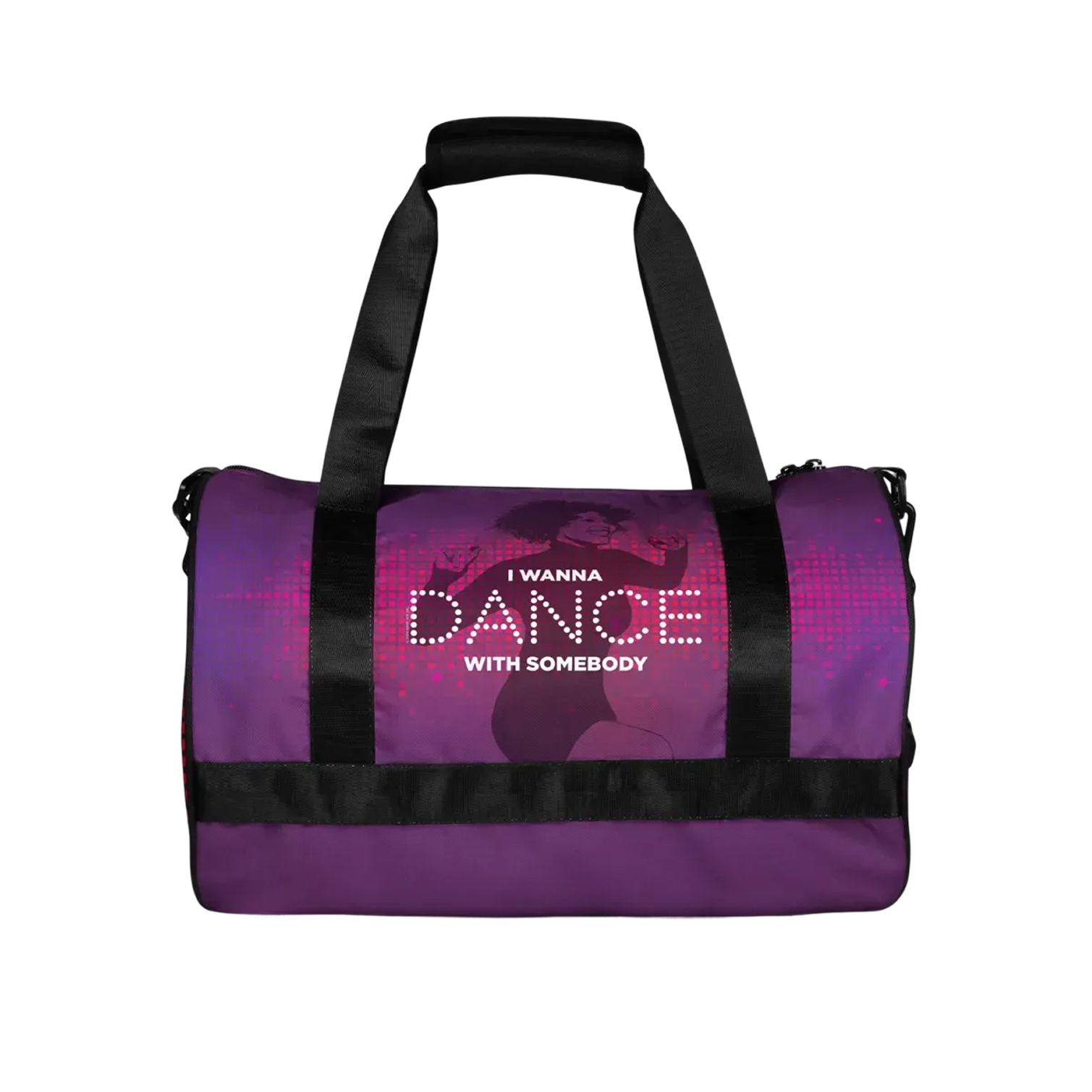 Whether you're hitting the gym, heading to a dance class, or embarking on a weekend getaway, this bag provides ample space for all your essentials. With multiple compartments and pockets, the Whitney Houston "I Wanna Dance with Somebody" Gym Bag offers convenient storage for your workout gear, shoes, water bottle, and more.