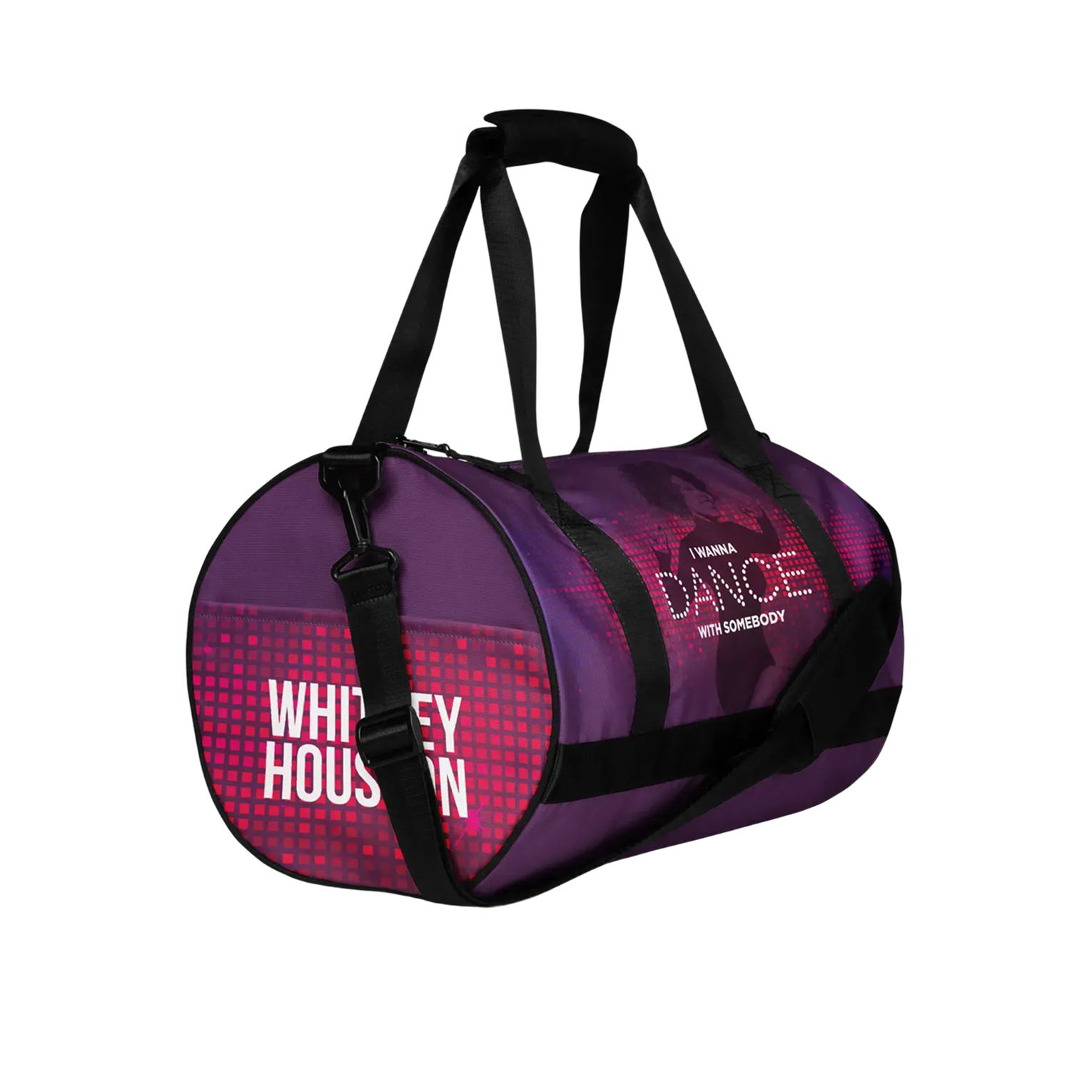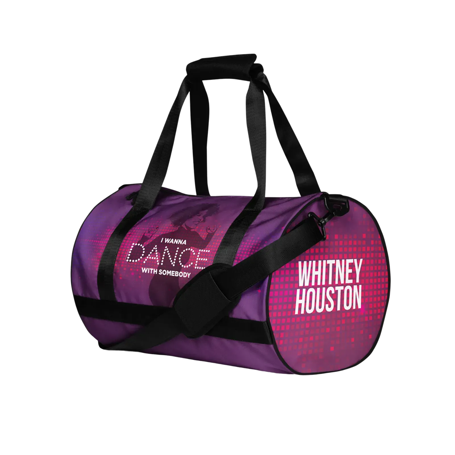 Introducing the Whitney Houston "I Wanna Dance with Somebody" Gym Bag, a versatile and stylish accessory that combines functionality with musical inspiration. Crafted with durable materials and a vibrant design inspired by Whitney Houston's iconic hit song, this gym bag is the perfect companion for your active lifestyle.